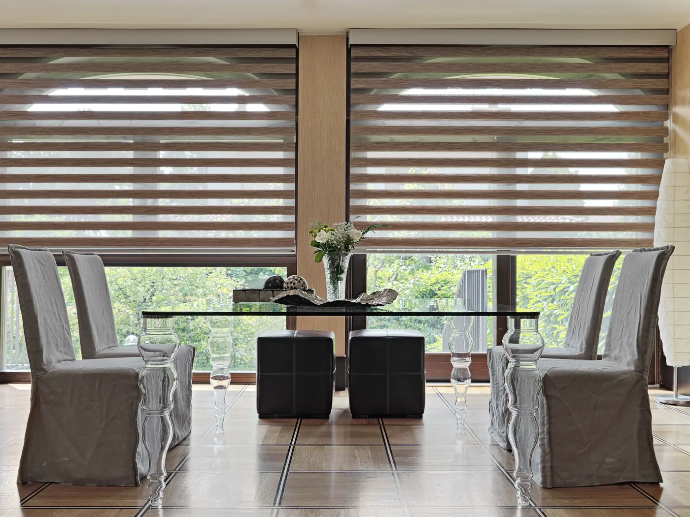 Schedule your free in-home consultation today. Our experts will help you find the perfect zebra shades for your dining table with fabric chairs.